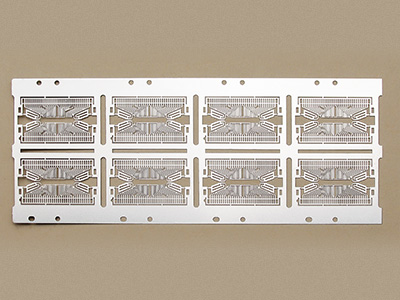 集成電路引線框架作為集成電路、半導(dǎo)體的芯片載體,是一種借助于鍵合材料(銅絲、鋁絲、金絲)實(shí)現(xiàn)芯片內(nèi)部電路引出端與外引線的電器鏈接,形成電氣回路的關(guān)鍵結(jié)構(gòu)件,具有蝕刻精度高、光滑無毛刺、無壓痕以及不改變材料特性等特點(diǎn)。