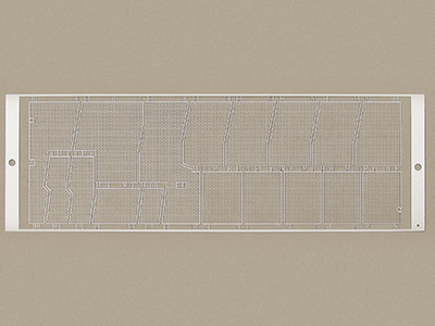 柵網(wǎng)即柵極是VFD(真空熒光顯示屏)的重要部件,其作用是在不妨礙顯示的原則下,將不銹鋼等的薄板予以光刻蝕(PHOTO-ETHING)后成型的金屬網(wǎng)格(MESH),在其上加上正電壓,可加速并擴散自燈絲所放射出來的電子,將之導向陽極;相反地,如果加上負電壓,則能攔阻游向陽極的電子,使陽極消光??蓮V泛應(yīng)用于汽車VFD面板、家電VFD面板、 音響、VTR VFD面板、事務(wù)機用VFD面板等領(lǐng)域。